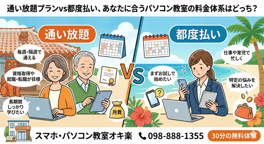 ブログ2026年4月1日通い放題プランvs都度払い、あなたに合うパソコン教室の料金体系はどっち?